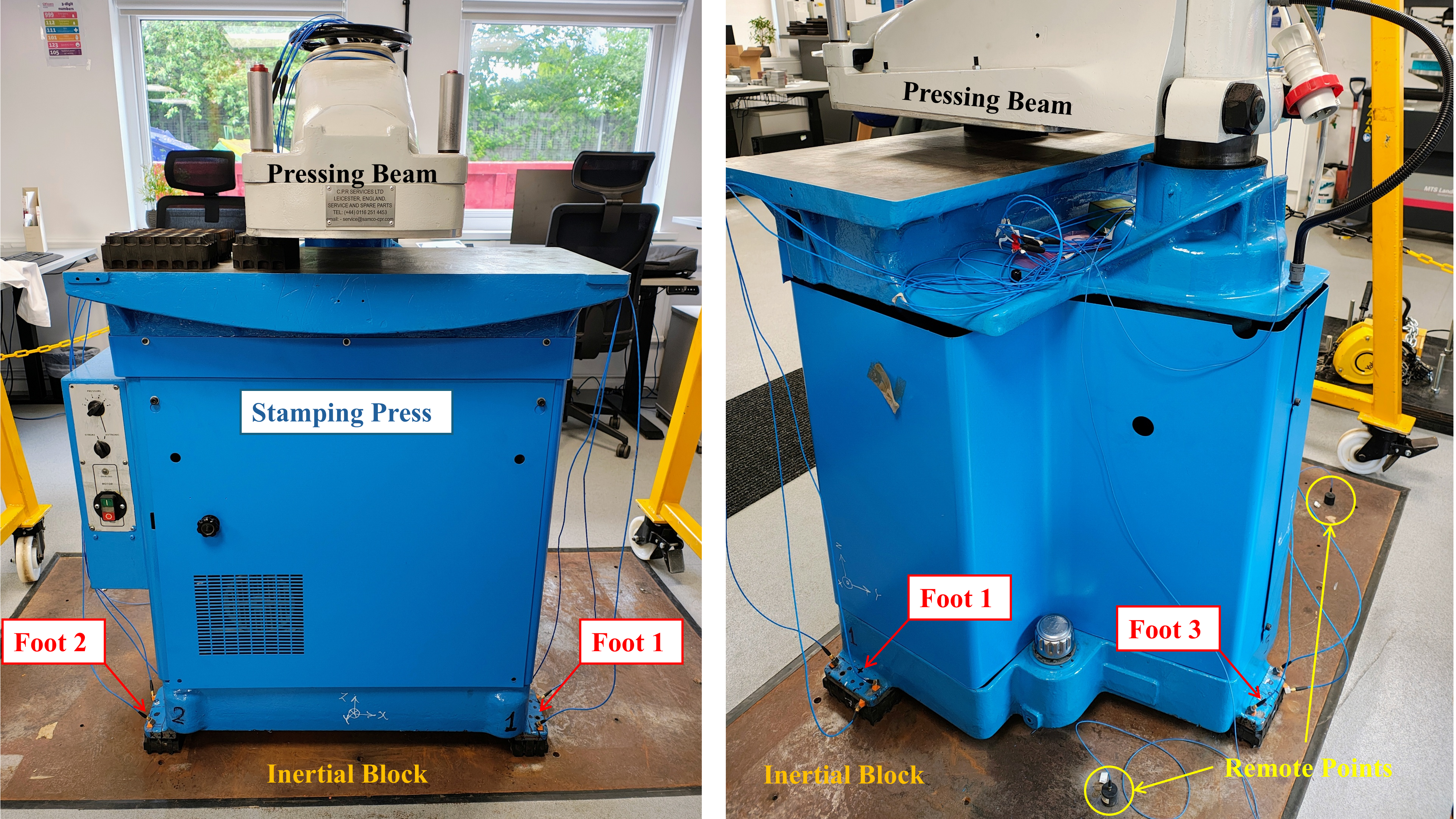 Having outlined the context of this paper, its remainder will be organised as follows. In Section 2 we first introduce the relevant background theory (namely, blocked force identification Section 2.1 and the virtual point transformation Section 2.2) before outlining our proposed global-residual interface representation in Section 2.3. In Section 3 we consider an experimental example consisting of a large heavy weight stamping press on both rigid and resilient footings. Finally, in Section 4 we provide some concluding remarks and thoughts for further development.
