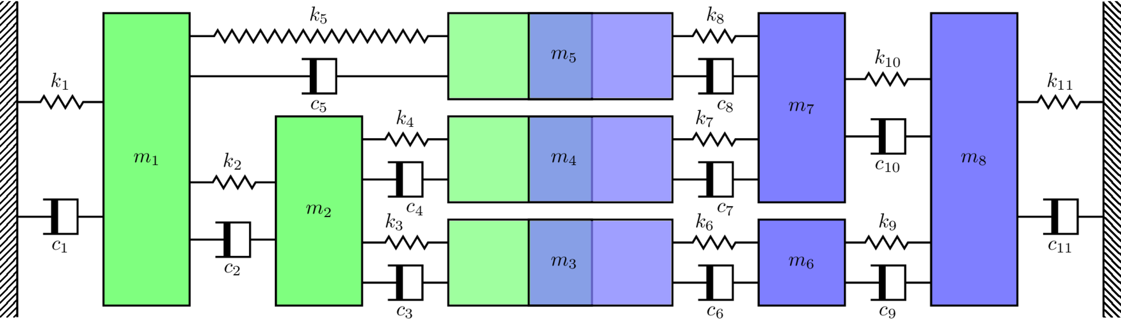 \mathbf{M}\ddot{\mathbf{x}}(t) + \mathbf{C}\dot{\mathbf{x}}(t) + \mathbf{K}\mathbf{x}(t) = \mathbf{f}(t).